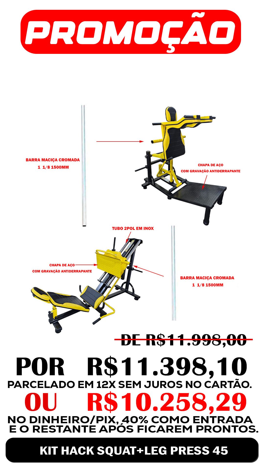 sendo 40% de entrada e o restante após ficarem prontos na fábrica